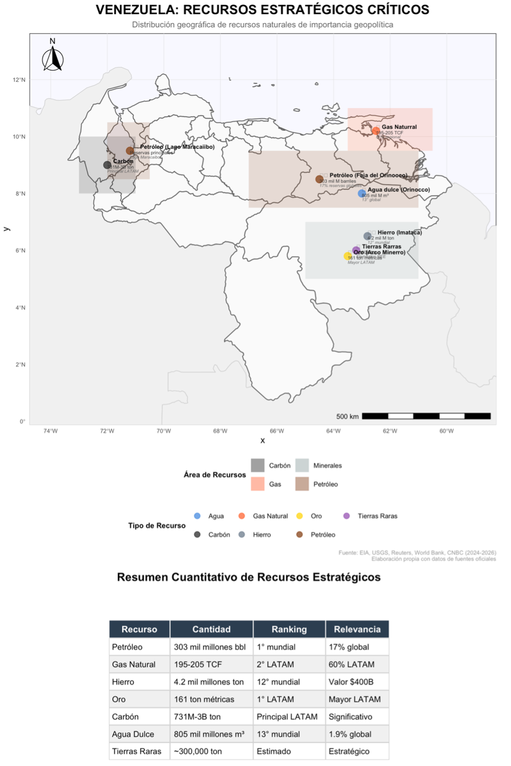 La República Bolivariana de Venezuela representa una prioridad máxima para la estrategia estadounidense debido a su dotación extraordinaria de recursos (Imagen 1). Según fuentes oficiales del gobierno estadounidense y organismos internacionales, el territorio venezolano contiene: