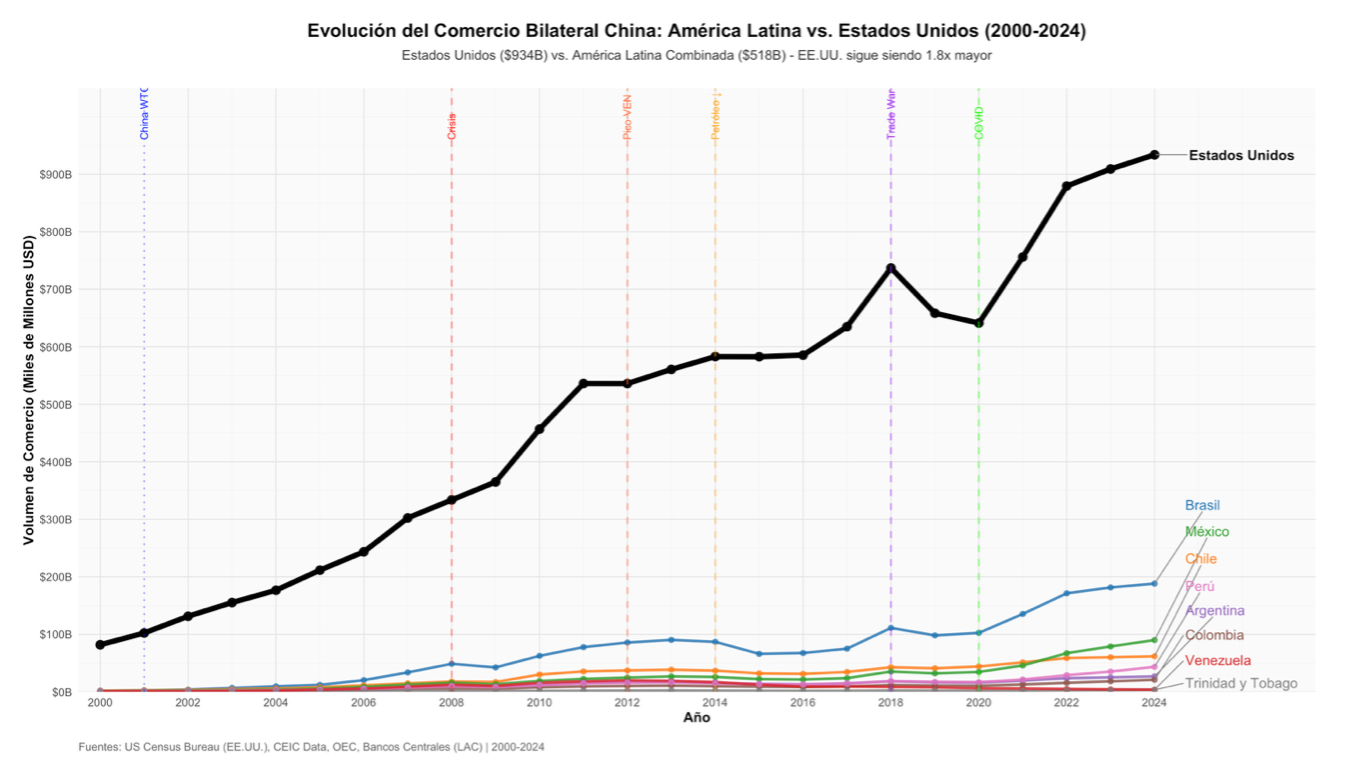 El crecimiento acelerado de los intereses chinos en la región latinoamericana ha sido objeto de contención mediante múltiples mecanismos de presión coercitiva. Estados Unidos ha ejercido restricciones arancelarias sobre México y otras naciones para desalentar el comercio con la República Popular, donde China representa un competidor económico importante. Sin embargo, en el caso de Venezuela, la situación presenta complejidad cualitativa distinta: sus recursos naturales constituyen elementos crítico-estratégicos para la seguridad energética y tecnológica estadounidense, acompañados de múltiples depósitos minerales de importancia geopolítica análoga.