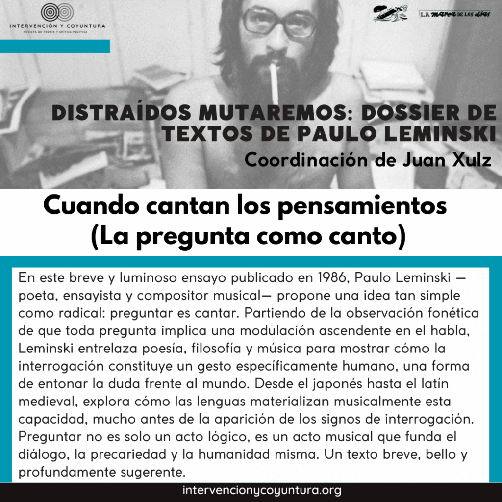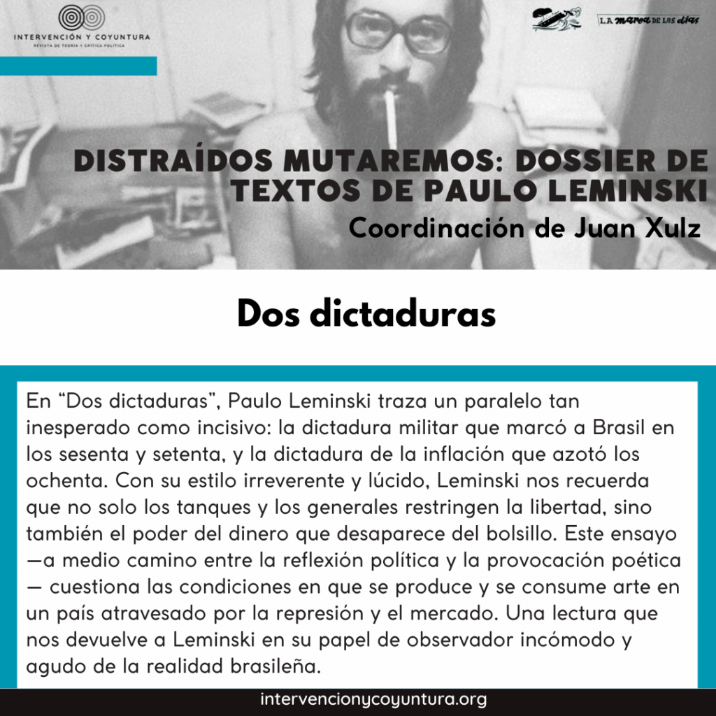 Leminski murió a sus 45 años, pero la presencia de sus libros crece entre los lectores brasileños. Esta sección mínima, con traducciones de algunos de sus textos, es el espíritu de Leminski que muta, viaja y encuentra lectores en otras latitudes.