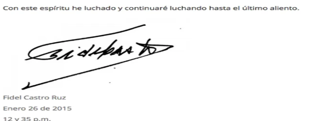 Firma aparecida el 26 de enero de 2015 https://www.americateve.com/cuba/fidel-castro-desconfia-eeuu-pero-apoya-negociacion-n845898