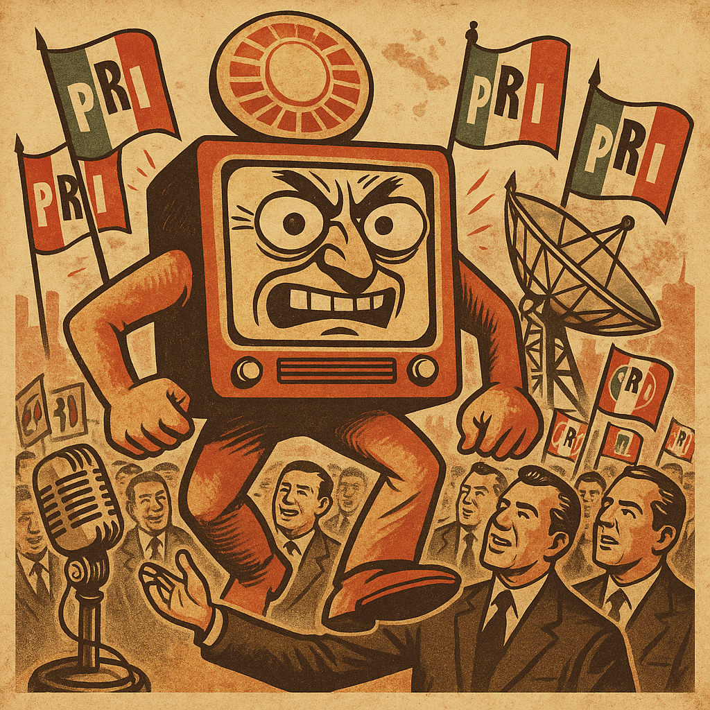 Ahora que lo pienso el absurdo es consustancial al hecho de que Televisa pretenda señalar la corrupción sistémica del PRI, cuando la empresa participó en el organigrama cuasidelincuencial del partido, al grado de asumirse como «soldado del PRI» (Emilio Azcárraga Milmo, dixit). Diferentes analistas, medios y comunicadores, al hacer la crítica de «PRI: Crónica del fin», han insistido en la simbiosis corrupta establecida entre el Estado, el Partido y Televisa, por lo que el afán de la empresa por desligarse de la deriva autoritaria y corrupta del Estado y su Partido ha sido estéril e incluso supondría un chiste, de no ser porque esa simbiosis arrojó una cantidad indeterminada de muertos, vía la represión o vía la pauperización de amplios sectores de la población.